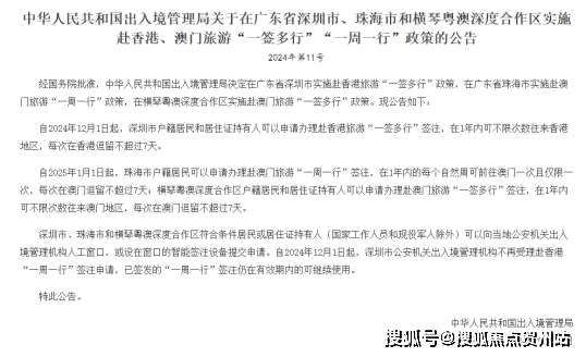 自2025年1月1日起,横琴粤澳深度合作区户籍居民和居住证持有人可以申请办理赴澳门旅游“一签多行”签注,在1年内可不限次数往来澳门地区,每次在澳门逗留不超过7天,一签多行” 便利政策的实施,将促进琴澳两地文旅资源进一步融合发展