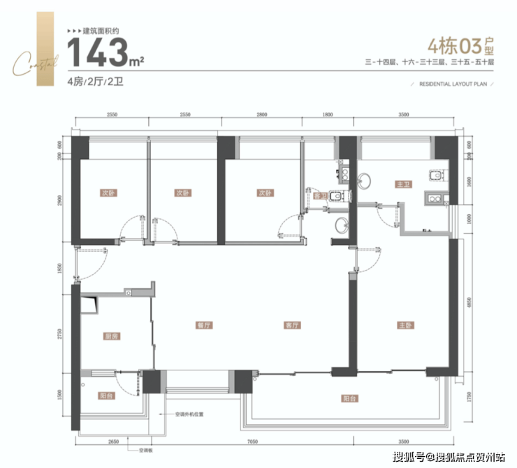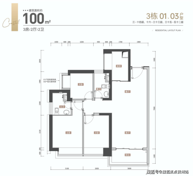 3栋:4梯6户,层高3.1米,01-04户型100平3房2卫,05-06户型120平4房2卫