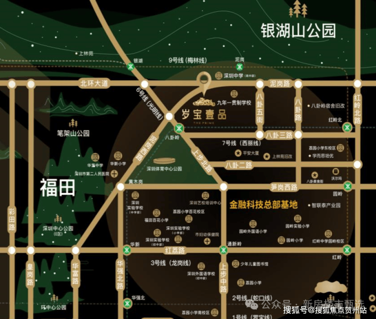 交通配套:双地铁上盖(6/7号线八卦岭站),邻近9号线泥岗站,周边北环大道、泥岗路等主干道环绕。