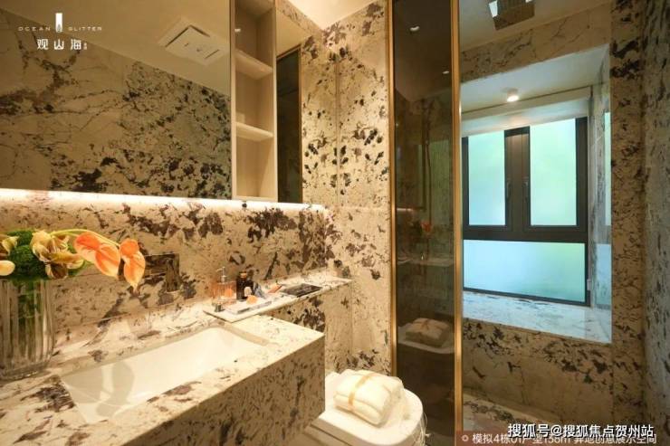4栋01户型主卧采用U型玻璃仓飘窗设计,对比常规一字型飘窗,不仅通风对流,更有约270°三面环幕视野,园间林影尽收眼底,坐揽山色,卧拥星河。卫生间明卫设计,打造酒店级奢适休憩空间,尊崇感时刻相随。