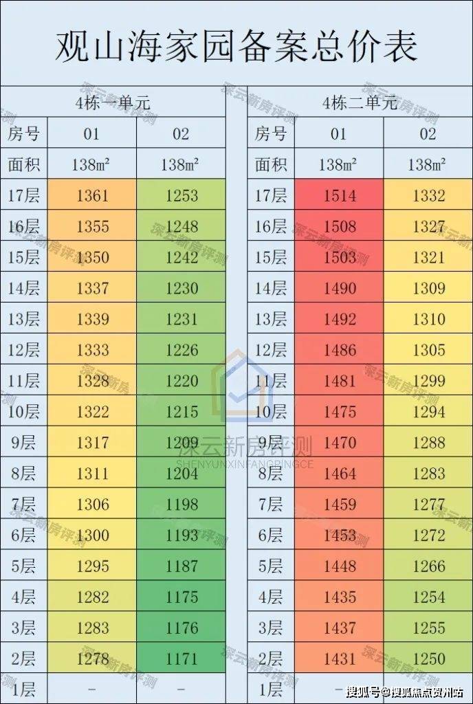分析总价4栋02户型<4栋01户型(+80万)<4栋02户型(+150万)<4栋01户型(+250万),各户型价格差还是比较大的,主要在于视野的遮挡问题。同一单元01户型均为边户,主卧和主卫均多一面飘窗,使用率会高一点,视野相对02户型会好一点,所以价格会比02户型高一些。