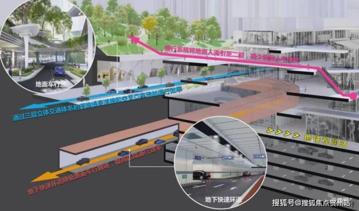 小区内还专门设计了地上公路+地下快速环路的复合型内部交通,能够最大化实现人车分流。