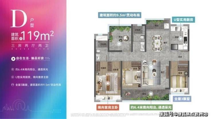 建面约105㎡3房,为全明户型设计,采光通风效果优越;