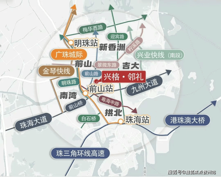 紧邻三台石路、致远路,500 米内有暨南大学公交站,46 路、55 路等多条线路途经;1 公里内有前山总站,驾车 10 分钟可达城轨明珠站、前山站,接驳广珠城轨,快速融入大湾区交通网。
