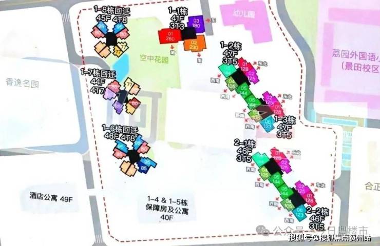 项目住宅产品建设用地面积约 4.1 万㎡,计容建面约 29万㎡,容积率 7.03,规划机动停车 2681 辆。项目由5栋住宅(1#1、1#2、1#3,2#2、2#3)、1栋(1#4)保障房、3栋(1#6、1#7、1#8)回迁房组成、1栋(1#5)公寓组成。
