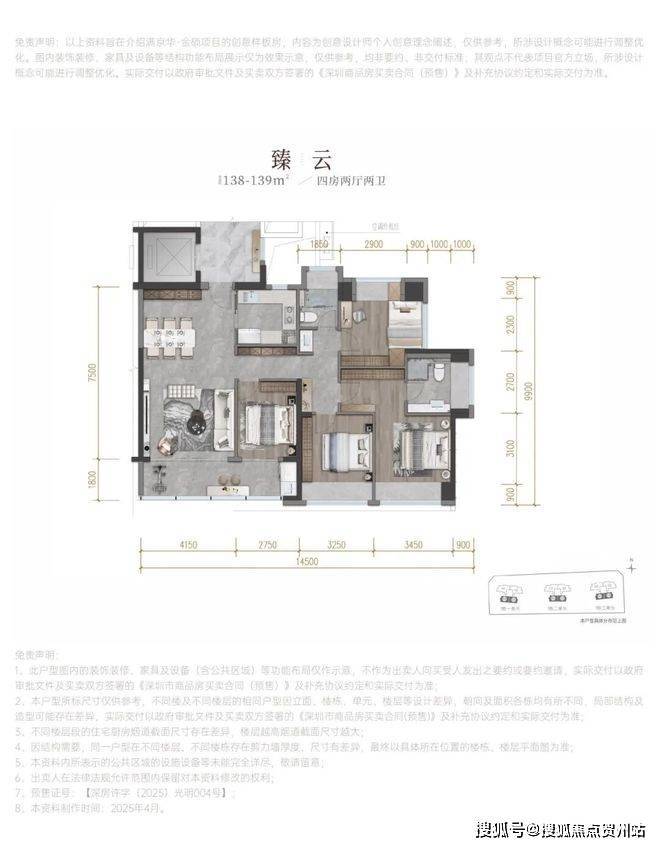 项目总占地约1.4万㎡,总建面约12.22万㎡,容积率5.38,绿化率40.01%,规划3栋33-41层住宅,共420套商品房,户型为140㎡4房、208㎡5房,精装交付