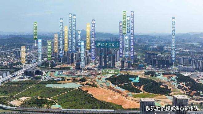 金硕臻府,由满京华集团开发,位于光明区光明中心区光辉大道与狮山三街交汇处,项目所在区域是光明规划最宜居,居住小区板块最大的片区,北侧靠近科学公园,东侧及南侧是深圳小学光明学校狮山校区及初中校区,距离最近的6号地铁线“光明站”约800米。