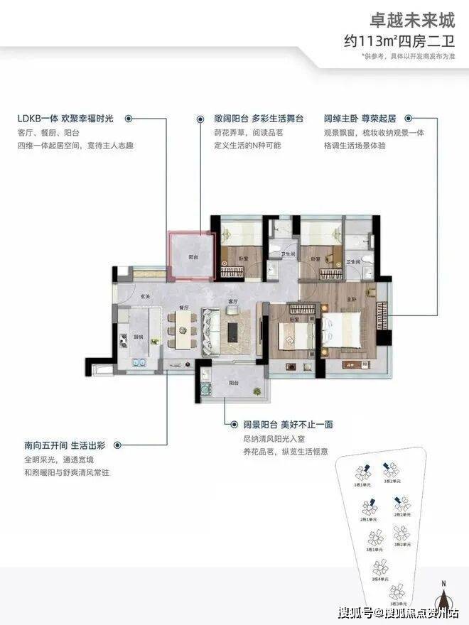 建筑面积约63-113㎡二至四房,新政后首批新规户型,秉承实用、社交、居家等人性化理念打造,赋予空间更多想象,满足现代家庭需求。
