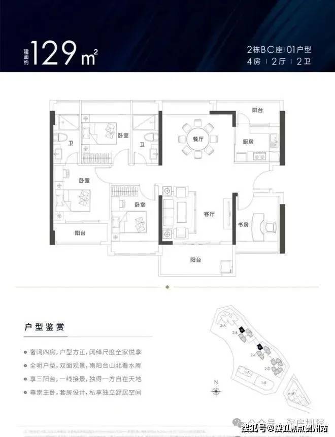项目定位为“刚需首置物业”,主打中小户型住宅及公寓产品,住宅面积段为79-129㎡,公寓面积47-62㎡,设计强调高实用率与功能分区合理性。其核心优势包括准现房交付(部分楼栋2023年竣工)、立体园林景观、交通及旧改规划红利等。