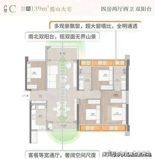 得房率:不同楼栋得房率有差异,宣传称加推的 2 栋得房率接近 100%,明显高于旁边的 3 栋,推测是因飘窗、设备平台等赠送空间的优化设计。