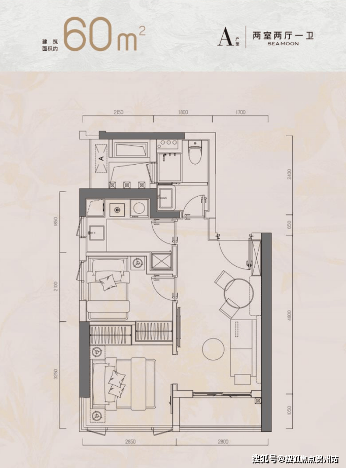 约 60㎡两房两厅(A 户型):折后总价 391 万起,双面采光 + 270° 环幕视野,小家庭住不局促,还能同时拥有海景和城市景观,性价比绝了。
