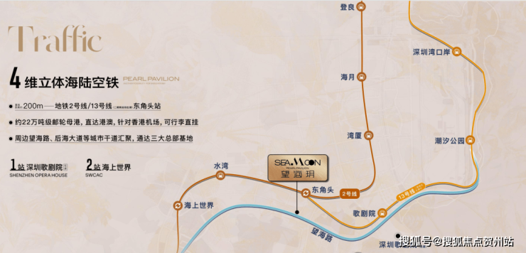地铁:200 米直达地铁 2 号线 / 13 号线东角头站,13 号线是 “深圳湾快线”,1 站到深圳歌剧院,2 站到海上世界,去后海、科技园也只要几站,通勤超方便;