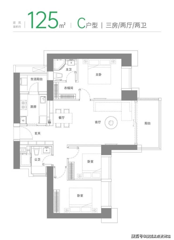 卧室标配飘窗,引入丰沛阳光,全家尽情舒展餐客一体贯通阳台,打造舒适、宽敞的欢聚天地奢享主卧,独享衣帽间、私人卫浴,自我非凡领地