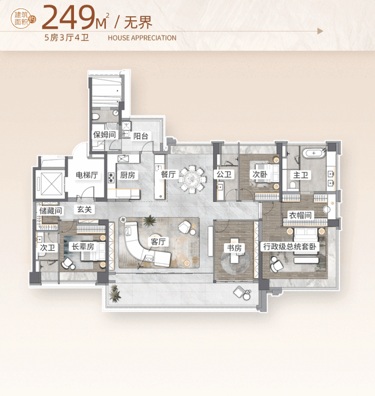 建面约249㎡五室三厅三卫