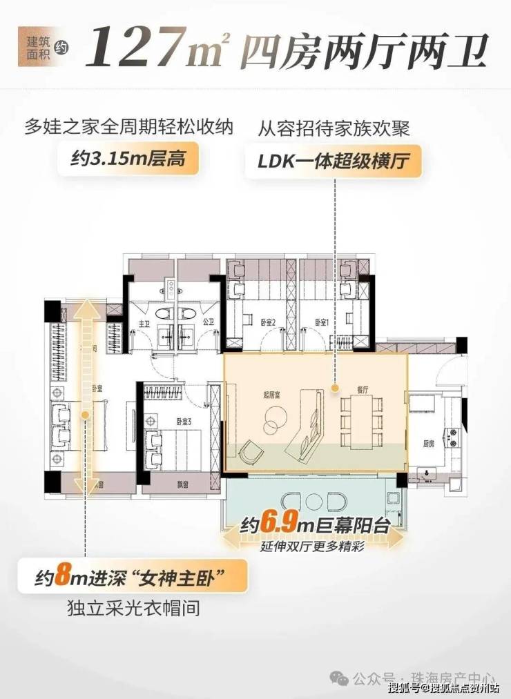 再如,告别“空间焦虑”,建面约127㎡四房,为六口之家上演“生活错峰”魔法。