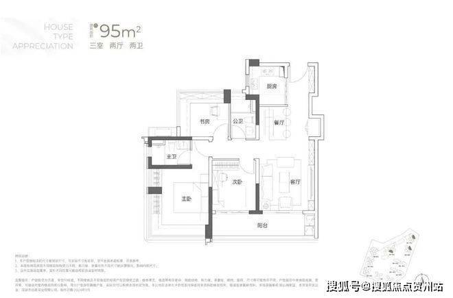 东南或西南朝向以及西北朝向,有3种户型格局,但整体差异并不大,都是横厅设计,阳台也都非常宽敞。主要核心区别是阳台的设计,这应该是为了贴合楼栋朝向、景观所做的调整。