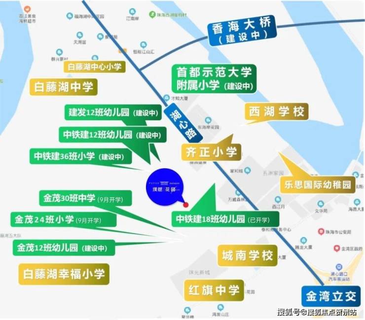 金茂地块在建12班幼儿园、24班小学、30班初中(预计9月开学)