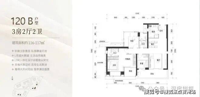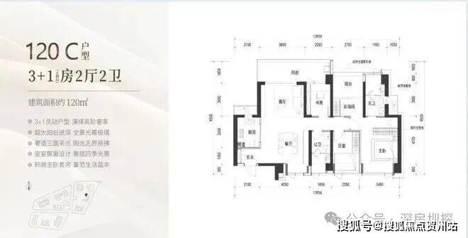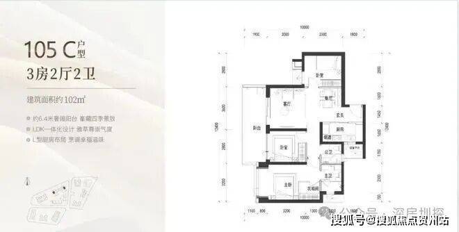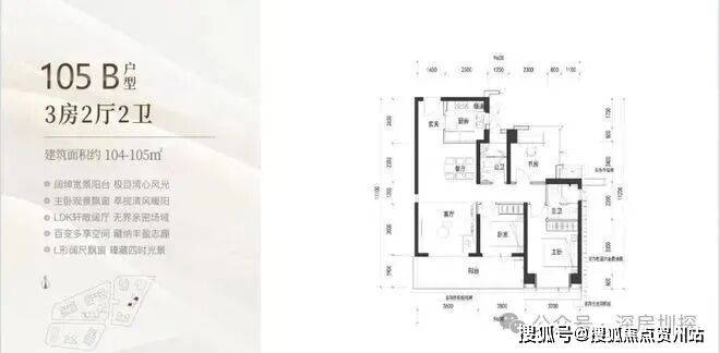 新规户型得房率高达90%,105㎡户型实际使用面积相当于传统120㎡。
