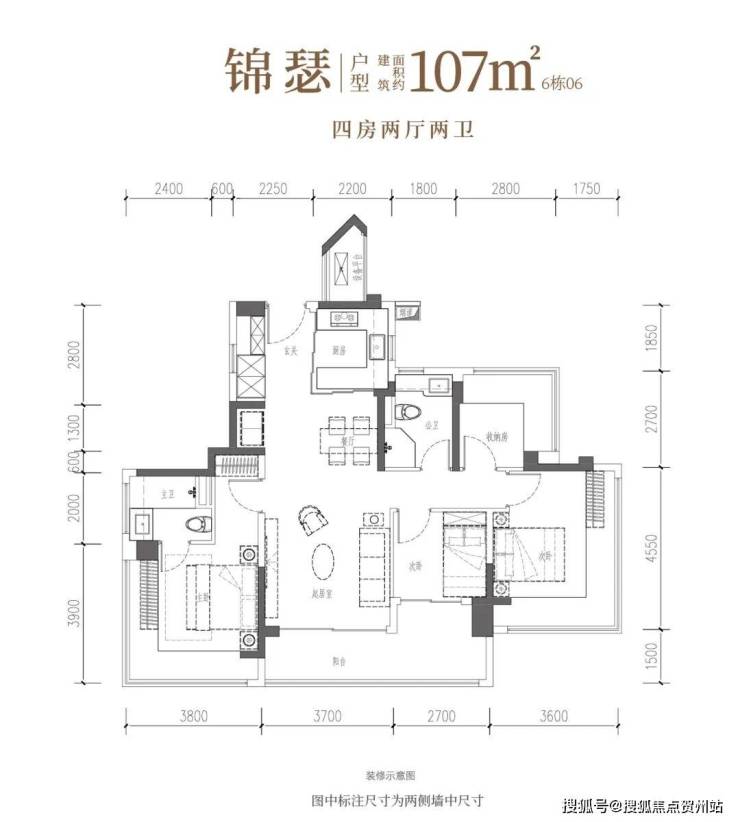 •锦和·约106㎡四房两厅两卫:南向四开间,一线园林景观,自在奢想。