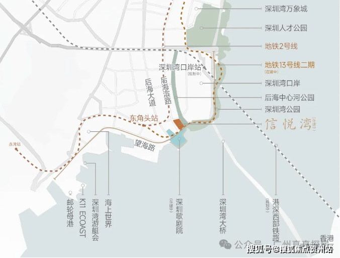 项目临近在建的13号线歌剧院站与地铁2号线东角头站,这条是含金量很高的贯穿南北的黄金快线,串联深圳湾、南山、科技园、西丽等高新产业区。地块南侧是望海路、东侧是后海滨路,可以快速驱车上到南海大道和滨海大道,去往深超总、后海、科技园等高新产业核心区域。