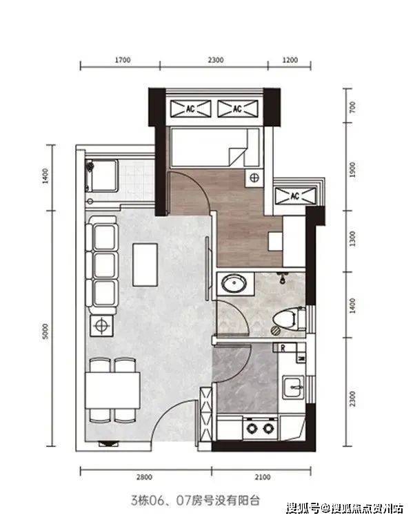 64㎡的2房2厅1卫,设计的竖厅格局,进门玄关,客厅3.3米开间,客餐厅一体化,L型厨房,卫生间干湿分离,得房率约73%(包含赠送),仅有几套可售。此户型集中在1B栋,这一栋里面有很多是回迁房,所以可售的不多。