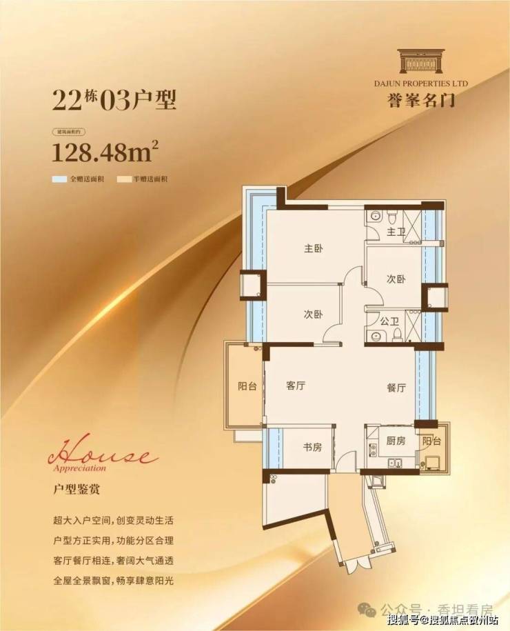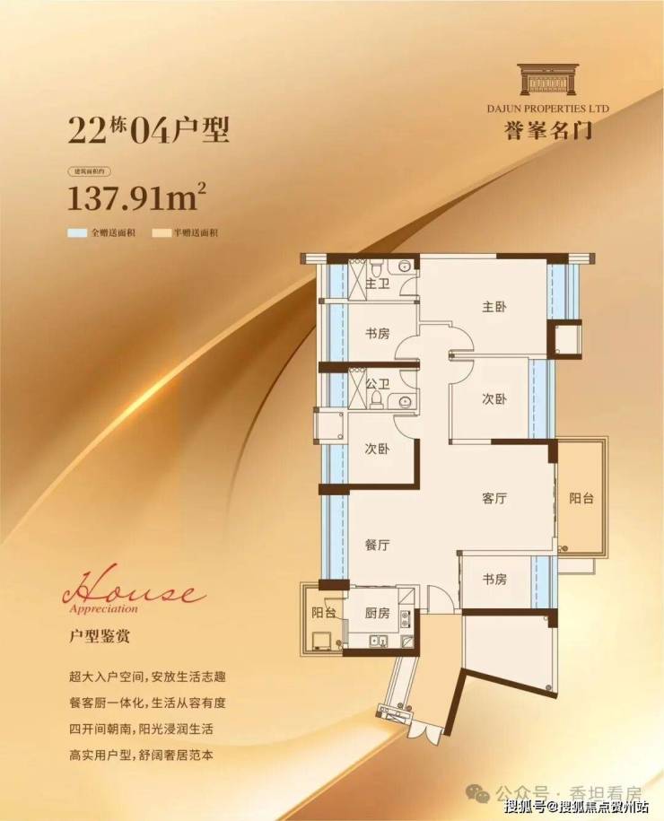 户户朝南全明采光,畅享大尺度入户花园,自由定制归家仪式感,户型通透舒适度高,超高使用率极尽空间美学,动静功能分区明朗,让家人的不同爱好都能找到专属的小天地。