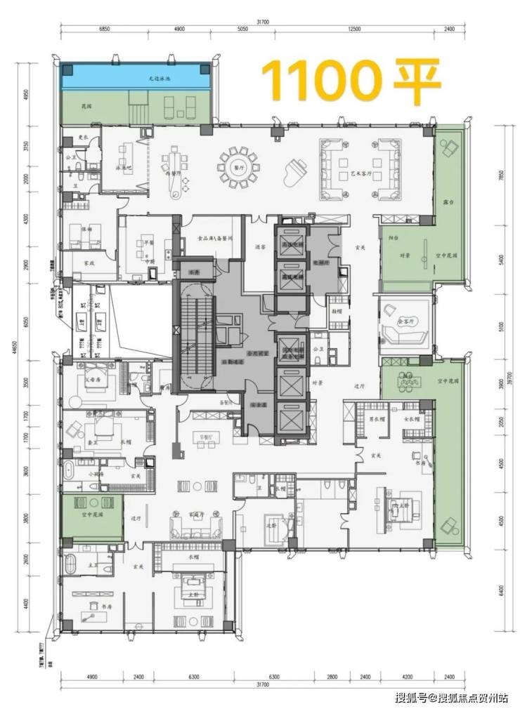 ——顶楼为整层不是复式,约1080-1180㎡顶奢大平层仅两套