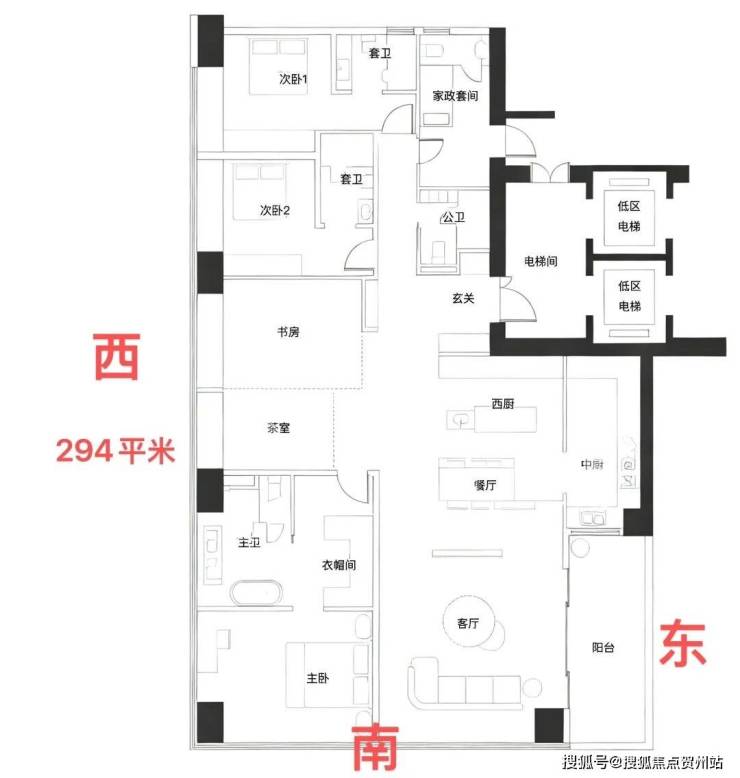 朝西几个次卧室有飘窗赠送空间,因此平摊下来这个295㎡的室内空间预计是比305㎡还要大的