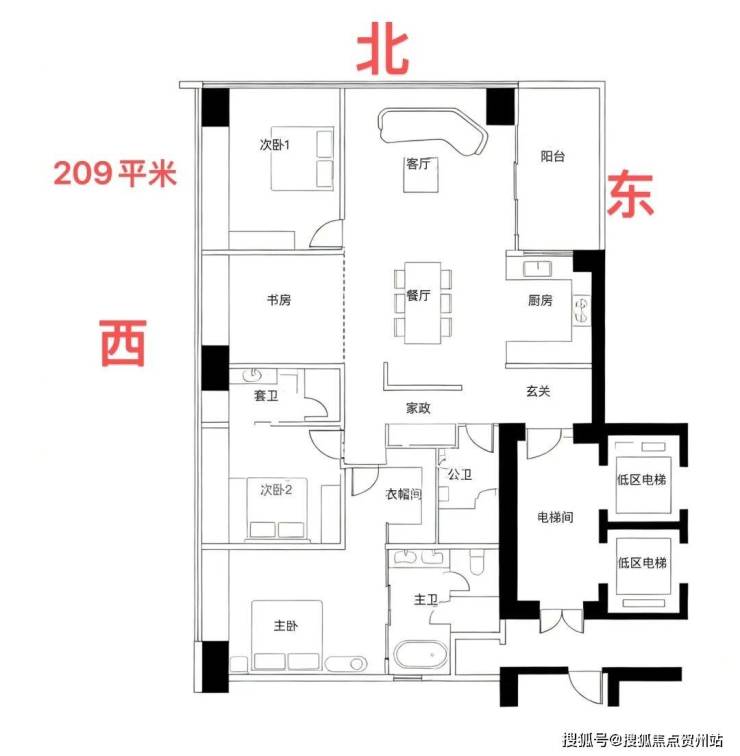 ——低区 4F起(150米以内)是约209-304㎡四房大户型;