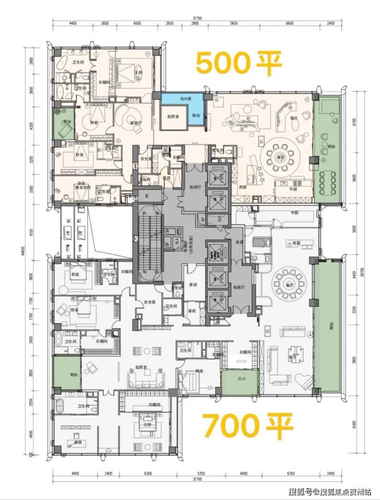 ——超高区 56F起(200米以上)是约500-700㎡顶级大平层;