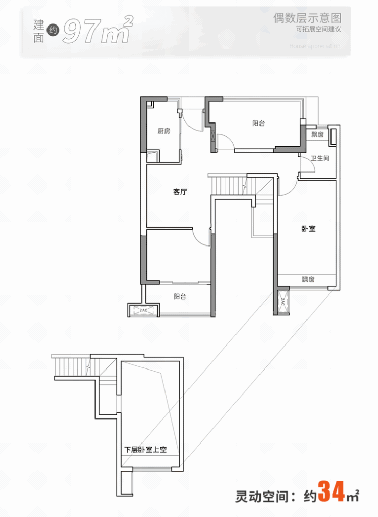 97㎡&104㎡ 四房三卫双套间,绝无仅有。