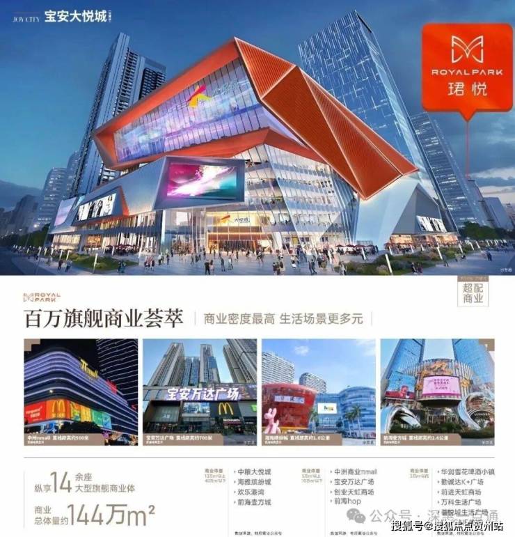 项目自带的商业体量约3.1万㎡,同时紧邻深圳首座中粮大悦城(规划约16万㎡商业MALL,已经开业),形成区域核心商圈。1公里范围内还聚集了中洲πmall(6万㎡)、宝安万达广场(19.8万㎡)、海雅缤纷城(36万㎡)及壹方城(36万㎡)等大型商业综合体,覆盖零售、餐饮、娱乐等多业态需求。此外,项目周边社区底商丰富,步行范围内可满足日常生活采买需求。