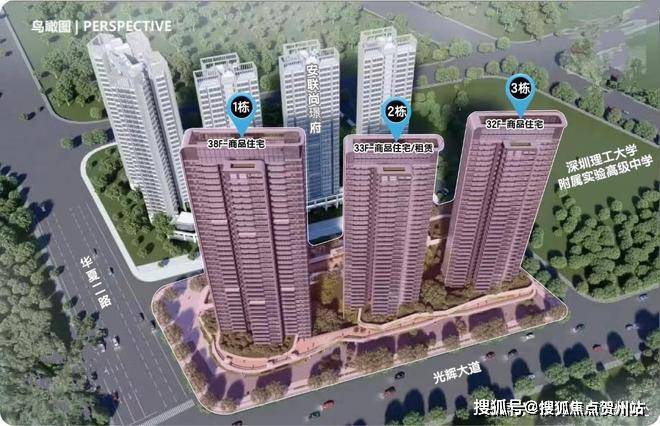 项目由深圳国企振业集团打造,总占地面积约1.22万㎡,总建筑面积约8.9万㎡,计容建筑面积约5.8万㎡,容积率4.5,绿化率32%,共由3栋总高32-38层高的住宅组成,其中1栋住宅38F,2栋住宅33F,3栋住宅32F。