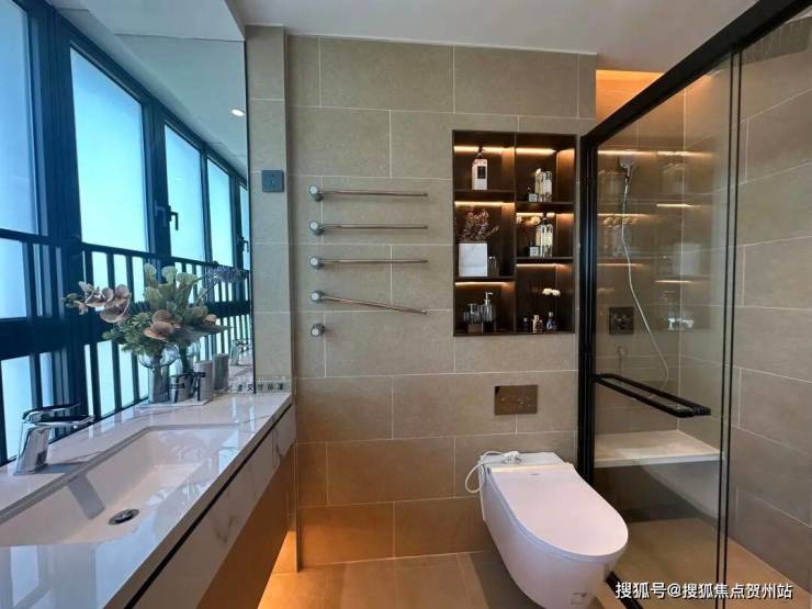 空间优化:客厅180°弧形景观窗,一体化实现功能区无缝衔接。约3.15米阔尺层高,全景窗结合高窗地比,优化采光通风。