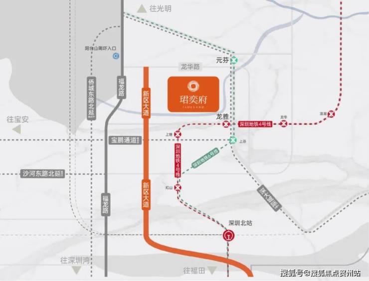 • 3轨道:地铁:约500米4号线龙胜站,约800米6号线元芬站,3站深圳北, 5站福田;城际铁路:深大城际(在建中),3站到机场。• 1大道:新区大道,7个红绿灯到福田。• 4干道:福龙路快速路,畅达福田中心;侨城东路北延(在建中)、沙河东路北延(规划中)、宝鹏通道(规划中)畅达南山、宝安,节省约20%通勤效率。