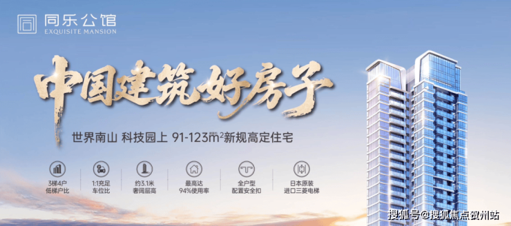 同乐公馆位于南山科技园旁,建面约91-123㎡高定新规住宅,使用率94%!约3.1米层高,扩容生活尺度。户户坐北朝南,三面采光,打造270°环幕主卧。131户配置132个车位,3梯4户。