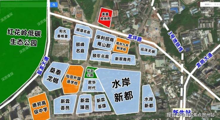 项目距离3号线东延线“新生站”约1.3公里,800米就是九年制仙田外国语学校。