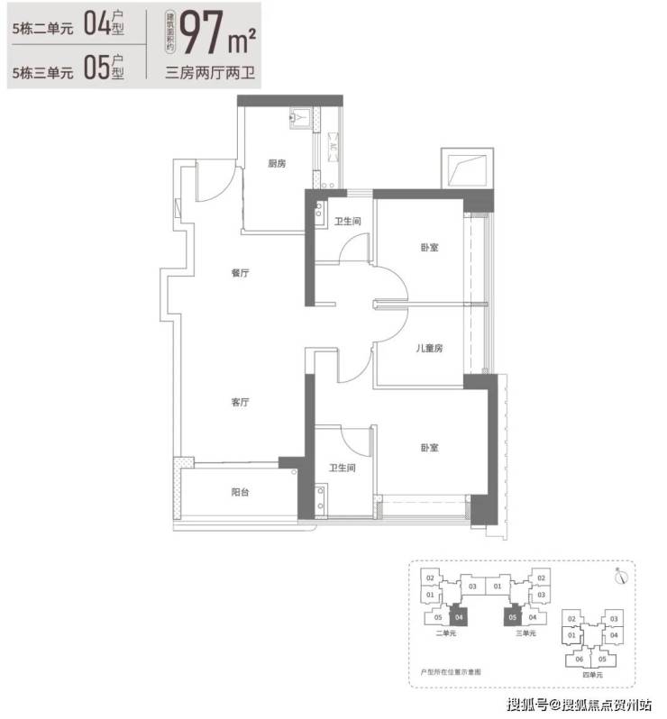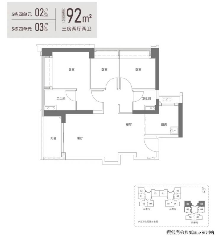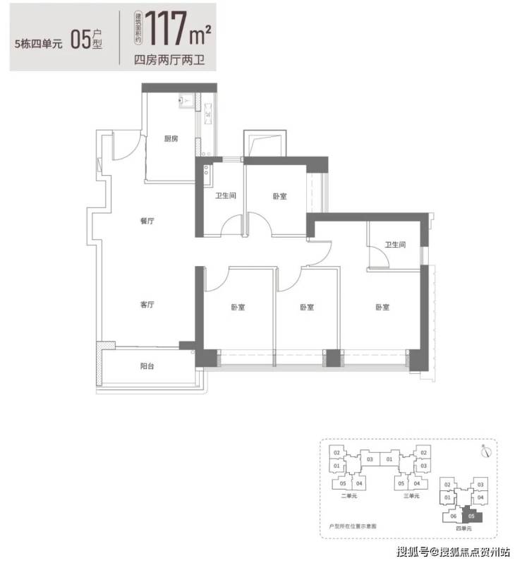 项目有4种户型,92平米的3房2厅2卫,97平米3房2厅2卫,117平米4房2厅2卫,129平米4房2厅2卫。
