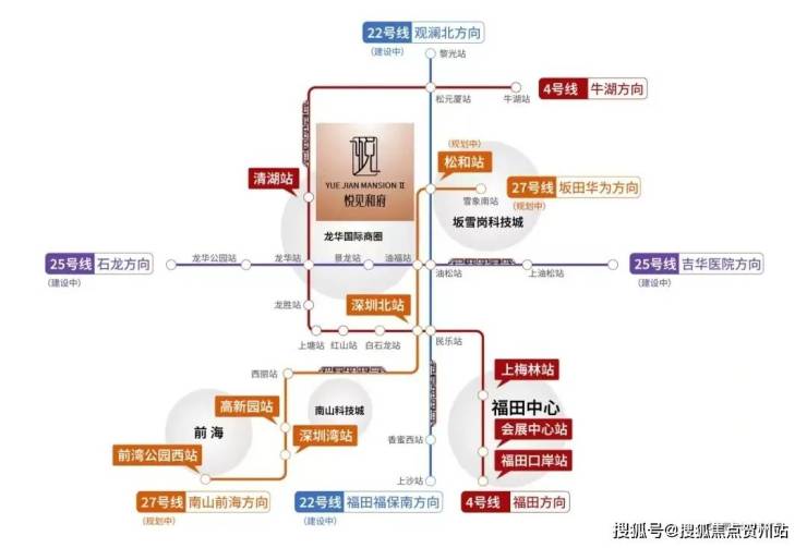 深圳地铁5期规划22/27号线松和站大概800-1000米的距离,目前正在规划建设中,具体进出口距离有待进一步确定;27号线去南山留仙洞、科技园、前海等核心方向,22号线去往福田方向;