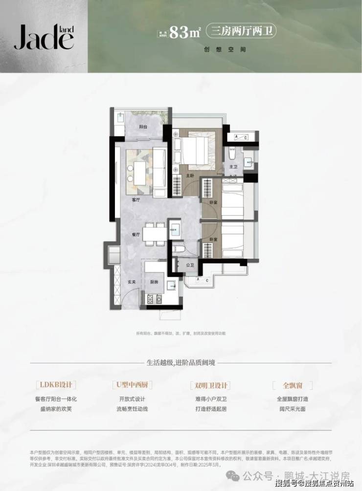 - 83㎡三房两卫(总价345万起):区域稀缺小户型,竖厅设计,预留冰箱位,主卫干湿分离,西北朝向阳台,适合预算有限的首置家庭。