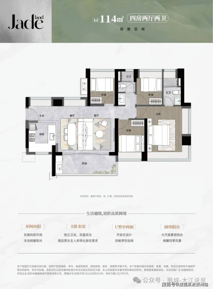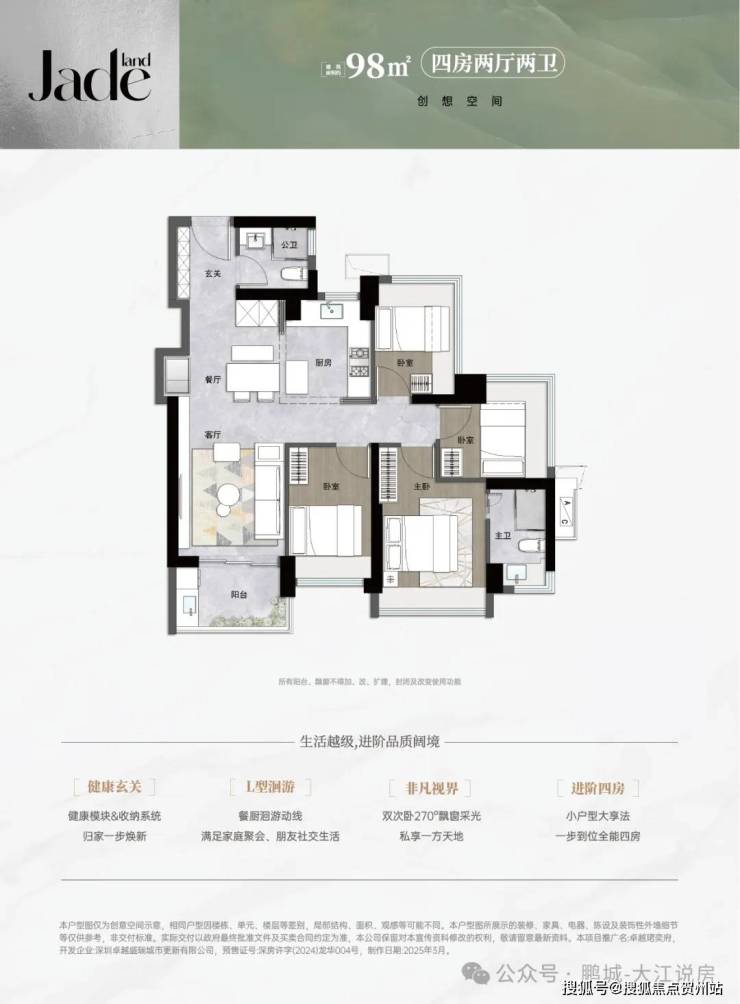 98-114㎡四房两卫(总价463万起):98㎡户型四开间朝南,可变空间满足多孩家庭需求;114㎡南北通透横厅设计,五开间朝南,全屋9面飘窗,主卧套间配置,适合改善型家庭。