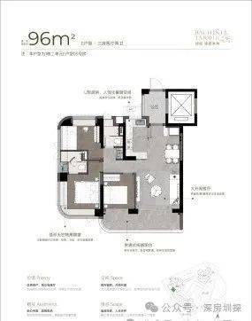 湾啟紫荆位于前海妈湾听海大道,占地约1.5万㎡,住宅建面约6.6万㎡,容积率5.14,共有三栋住宅组成,层高36-37F,共485户,车位595个,车位比1.1.2,4梯5户,主推约96㎡稀缺三房、111㎡3+1房、122㎡四房、142㎡四房。户型设计了大客厅、宽景阳台、阔景飘窗等,拥有山海河多重景观资源,计划品质精装交付。户型采用建筑新规设计,户户大阳台,4梯5户,分布式电梯设计,独立电梯厅。