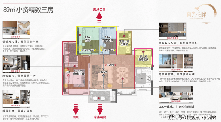 (2)89㎡三房:横厅设计,东南向,总价约117.5万起,单价约12000元/㎡。