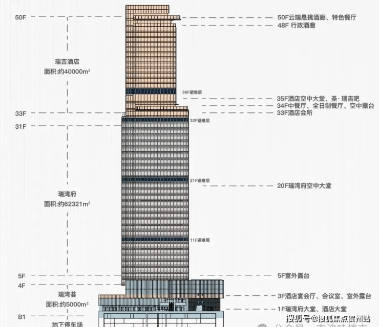 (5-19层底区,20-31层中区,33-51层瑞吉酒店)