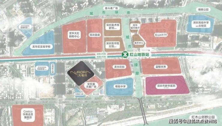 近享醇熟商业,片区超200万方商业体量,超越福田CBD商业集群,周边COSTCO(会员招募阶段,预计年底开业)、龙华天虹、红山6979、蓝鲸世界(在建中)等标杆商业环绕。