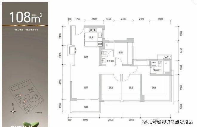 建筑面积约99㎡的3房2卫02/03/05/06户型:全南向爆款空间