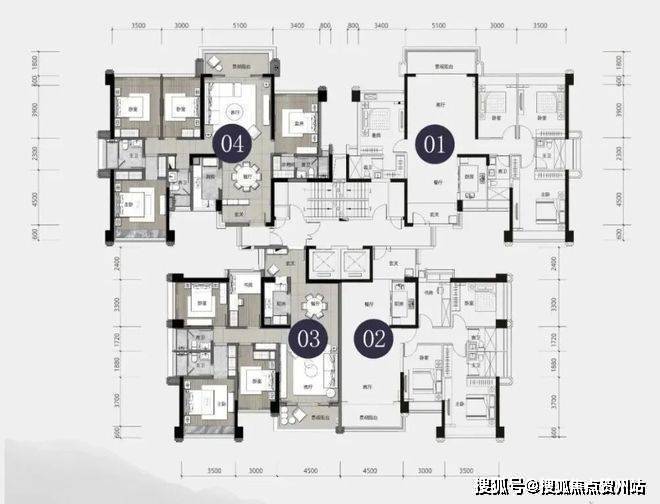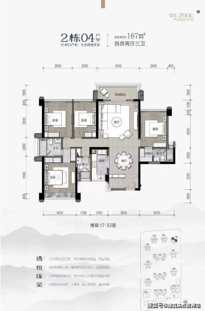 同时,从平面图来看,住宅楼栋层高为30-32层,小区内建设有下沉广场。
