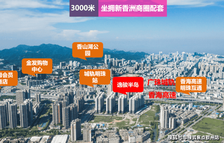 周边配套:山姆会员店10分钟 奥园广场15分钟 珠海明珠轻轨站7分钟(步行)大型农贸市场(金斗湾市场)3分钟 步行10分钟 绿景喜悦荟商圈步行6分钟 上冲医院10分钟 澳门关口15分钟 人工岛20分钟,直径3公里生活圈内,有珠海市体育中心、香山湖公园、珠海市图书馆、妇女儿童活动中心、TOD公园、金发购物中心、新香洲华润万家商业旗舰、上冲医院等优质公共配套设施。