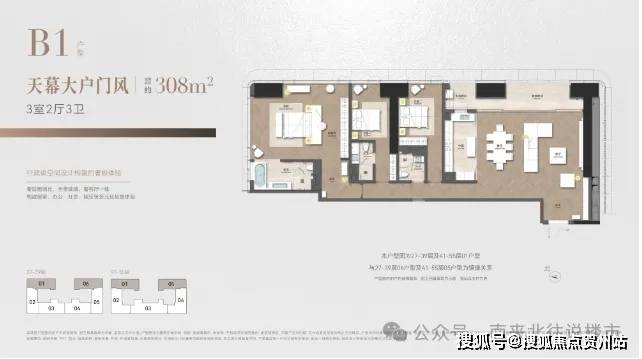 ◎建面约308㎡ 3室2厅3卫 天幕大户门风