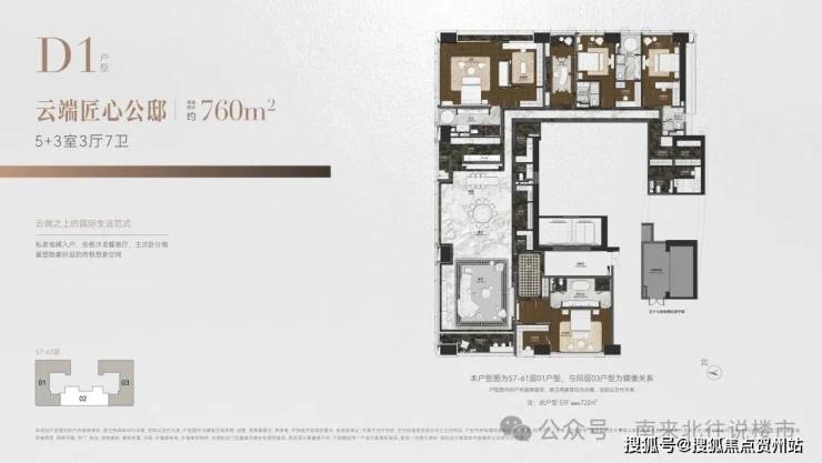 ◎建面约760㎡ 5+3室3厅7卫 云端匠心公邸
